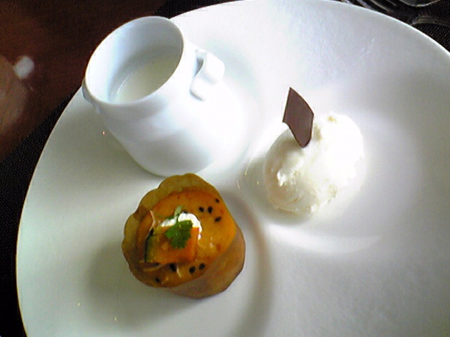 デザートは牛乳のジェラード、ミルクプリン、かぼちゃの味噌風味のカップケーキ♪