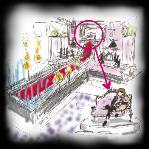 クマさんを渡されて中央のソファーへ